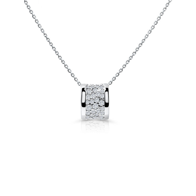 Elegantný prívesok zo 14-karátového bieleho zlata so 66 nádhernými diamantmi okrúhleho brusu s celkovou hmotnosťou 0,390 ct. Prívesok má lesklý povrch. Šperk sa dodáva v luxusnej darčekovej krabičke spolu s certifikátom pravosti.