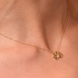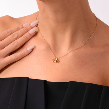 Luxusný prívesok v tvare lotosového kvetu z ružového 14 karátového zlata doplnený žiarivým diamantom 0.085 ct okrúhleho brusu. Prívesok má lesklý povrch. Šperk je uložený v luxusnej darčekovej krabičke spolu s certifikátom pravosti.