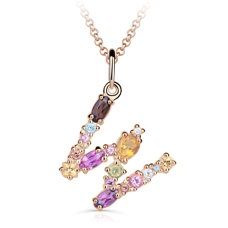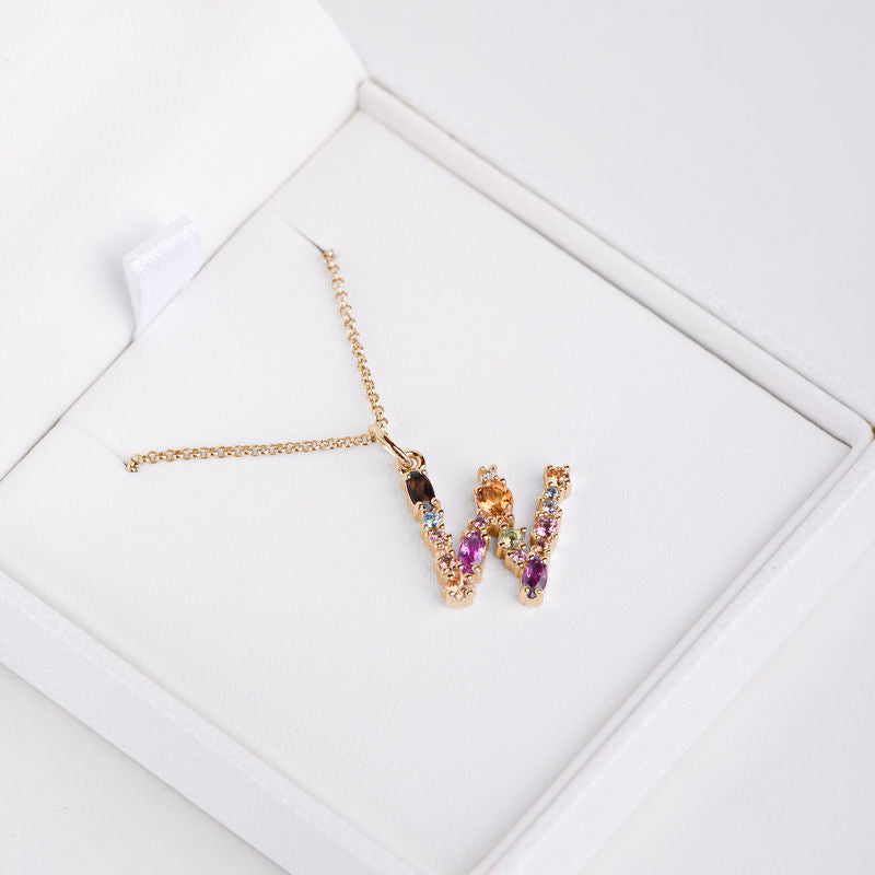 Zlatý prívesok v tvare písmena W, DF 4808, ružové zlato, farebné kamene