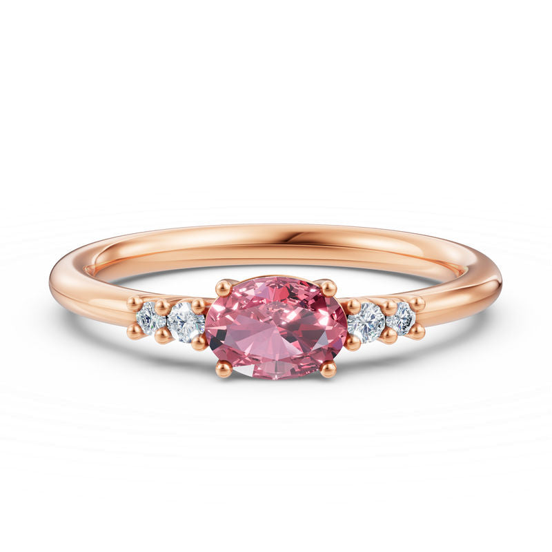 Zlatý prsten DF 4015 z růžového zlata, růžový safír s diamanty