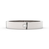 Jednoduchý a tradičný snubný prsteň, ktorý je vyrobený z kvalitného, 14-karátového, bieleho zlata o celkovej hmotnosti 4 g (orientačná váha). Šírka prsteňa je 3,50 mm. Prsteň má plochý profil, patrí do kolekcie Basic, v ktorej sú prstene vyrábané tradičnou metódou valcovania a vyznačujú sa veľmi prijateľnými cenami. Prsteň je osadený jedným diamantom okrúhleho brusu s hmotnosťou 0,02ct. Briliant je umiestnený vždy v strede prsteňa a je hladko zapustený.
