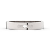 Jednoduchý a tradičný snubný prsteň, ktorý je vyrobený z kvalitného, 14-karátového, bieleho zlata o celkovej hmotnosti 4 g (orientačná váha). Šírka prsteňa je 3,50 mm. Prsteň má plochý profil, patrí do kolekcie Basic, v ktorej sú prstene vyrábané tradičnou metódou valcovania a vyznačujú sa veľmi prijateľnými cenami. Prsteň je osadený jedným diamantom okrúhleho brusu s hmotnosťou 0,02ct. Briliant je hladko zapustený vo vodorovnej drážke v strede prsteňa.