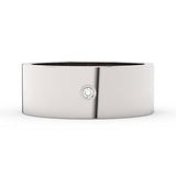 Jednoduchý a tradičný snubný prsteň, ktorý je vyrobený z kvalitného, 14-karátového, bieleho zlata s celkovou hmotnosťou 7,5 g (orientačná váha). Šírka prsteňa je 7mm. Prsteň má plochý profil, patrí do kolekcie Basic, v ktorej sú prstene vyrábané tradičnou metódou valcovania a vyznačujú sa veľmi prijateľnými cenami. Prsteň je osadený jedným diamantom okrúhleho brusu s hmotnosťou 0,02ct. Briliant je umiestnený vždy v strede prsteňa a je hladko zapustený.