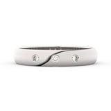 Jednoduchý a tradičný snubný prsteň, ktorý je vyrobený z kvalitného, 14-karátového, bieleho zlata o celkovej hmotnosti 3,5 g (orientačná váha). Šírka prsteňa je 3,50 mm. Prsteň má polguľatý profil, patrí do kolekcie Basic, v ktorej sú prstene vyrábané tradičnou metódou valcovania a vyznačujú sa veľmi prijateľnými cenami. Prsteň je osadený tromi diamantmi okrúhleho brusu s hmotnosťou 0,06ct. Brilianty sú hladko zapustené v strede prsteňa vo vzdialenosti 2mm od seba.