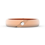Jednoduchý a tradičný snubný prsteň, ktorý je vyrobený z kvalitného, 14-karátového, ružového zlata o celkovej hmotnosti 4,35 g (orientačná váha). Šírka prsteňa je 4mm. Prsteň má pologuľatý profil, patrí do kolekcie Basic, v ktorej sú prstene vyrábané tradičnou metódou valcovania a vyznačujú sa veľmi prijateľnými cenami. Prsteň je osadený jedným diamantom okrúhleho brusu s hmotnosťou 0,02ct. Briliant je hladko zapustený v diagonálnej drážke v strede prsteňa.
