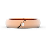 Jednoduchý a tradičný snubný prsteň, ktorý je vyrobený z kvalitného, 14-karátového, ružového zlata o celkovej hmotnosti 4,65 g (orientačná váha). Šírka prsteňa je 4,5mm. Prsteň má polguľatý profil, patrí do kolekcie Basic, v ktorej sú prstene vyrábané tradičnou metódou valcovania a vyznačujú sa veľmi prijateľnými cenami. Prsteň je osadený jedným diamantom okrúhleho brusu s hmotnosťou 0,02ct. Briliant je umiestnený vždy v strede prsteňa a je hladko zapustený.