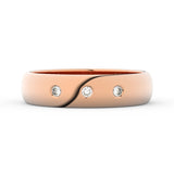 Jednoduchý a tradičný snubný prsteň, ktorý je vyrobený z kvalitného, 14-karátového, ružového zlata o celkovej hmotnosti 4,65 g (orientačná váha). Šírka prsteňa je 4,5mm. Prsteň má polguľatý profil, patrí do kolekcie Basic, v ktorej sú prstene vyrábané tradičnou metódou valcovania a vyznačujú sa veľmi prijateľnými cenami. Prsteň je osadený tromi diamantmi okrúhleho brusu s hmotnosťou 0,06ct. Brilianty sú hladko zapustené v strede prsteňa vo vzdialenosti 2mm od seba.