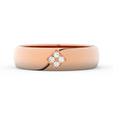 Jednoduchý a tradičný snubný prsteň, ktorý je vyrobený z kvalitného, 14-karátového, ružového zlata o celkovej hmotnosti 5,4 g (orientačná váha). Šírka prsteňa je 4,70 mm. Prsteň má pologuľatý profil, patrí do kolekcie Basic, v ktorej sú prstene vyrábané tradičnou metódou valcovania a vyznačujú sa veľmi prijateľnými cenami. Prsteň je osadený štyrmi diamantmi okrúhleho brusu s hmotnosťou 0,02ct. Brilianty sú v prsteni usadené v drobných zlatých zrnkách do tvaru kosoštvorca.