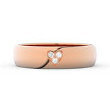 Jednoduchý a tradičný snubný prsteň, ktorý je vyrobený z kvalitného, 14-karátového, ružového zlata o celkovej hmotnosti 5,4 g (orientačná váha). Šírka prsteňa je 4,70 mm. Prsteň má pologuľatý profil, patrí do kolekcie Basic, v ktorej sú prstene vyrábané tradičnou metódou valcovania a vyznačujú sa veľmi prijateľnými cenami. Prsteň je osadený tromi diamantmi okrúhleho brusu s hmotnosťou 0,027ct. Brilianty usadené v zlatých zrnkách tvoria v prsteni tvar srdca.