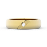 Jednoduchý a tradičný snubný prsteň, ktorý je vyrobený z kvalitného, 14-karátového, žltého zlata o celkovej hmotnosti 5,4 g (orientačná váha). Šírka prsteňa je 4,70 mm. Prsteň má polguľatý profil, patrí do kolekcie Basic, v ktorej sú prstene vyrábané tradičnou metódou valcovania a vyznačujú sa veľmi prijateľnými cenami. Prsteň je osadený jedným diamantom okrúhleho brusu s hmotnosťou 0,02ct. Briliant je hladko zapustený v diagonálnej drážke v strede prsteňa.