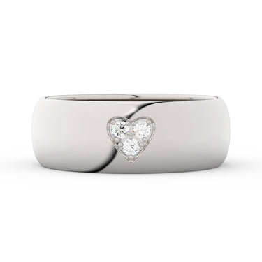 Jednoduchý a tradičný snubný prsteň, ktorý je vyrobený z kvalitného, 14-karátového, bieleho zlata o celkovej hmotnosti 6,65 g (orientačná váha). Šírka prsteňa je 6,5mm. Prsteň má polguľatý profil, patrí do kolekcie Basic, v ktorej sú prstene vyrábané tradičnou metódou valcovania a vyznačujú sa veľmi prijateľnými cenami. Prsteň je osadený tromi diamantmi okrúhleho brusu s hmotnosťou 0,027ct. Brilianty usadené v zlatých zrnkách tvoria v prsteni tvar srdca.