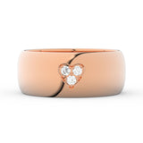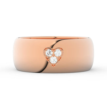 Jednoduchý a tradičný snubný prsteň, ktorý je vyrobený z kvalitného, 14-karátového, ružového zlata o celkovej hmotnosti 6,7 g (orientačná váha). Šírka prsteňa je 7,5mm. Prsteň má pologuľatý profil, patrí do kolekcie Basic, v ktorej sú prstene vyrábané tradičnou metódou valcovania a vyznačujú sa veľmi prijateľnými cenami. Prsteň je osadený tromi diamantmi okrúhleho brusu s hmotnosťou 0,027ct. Brilianty usadené v zlatých zrnkách tvoria v prsteni tvar srdca.