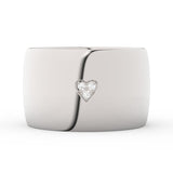Jednoduchý a tradičný snubný prsteň, ktorý je vyrobený z kvalitného, 14-karátového, bieleho zlata o celkovej hmotnosti 8,7 g (orientačná váha). Šírka prsteňa je 11mm. Prsteň má polguľatý profil, patrí do kolekcie Basic, v ktorej sú prstene vyrábané tradičnou metódou valcovania a vyznačujú sa veľmi prijateľnými cenami. Prsteň je osadený tromi diamantmi okrúhleho brusu s hmotnosťou 0,027ct. Brilianty usadené v zlatých zrnkách tvoria v prsteni tvar srdca.