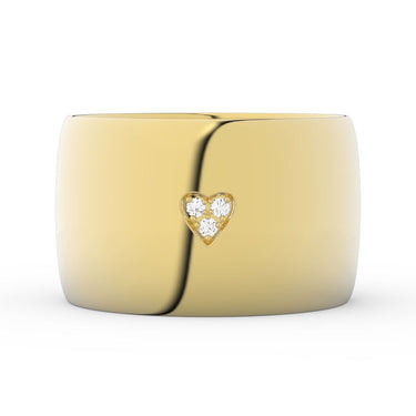 Jednoduchý a tradičný snubný prsteň, ktorý je vyrobený z kvalitného, 14-karátového, žltého zlata o celkovej hmotnosti 8,7 g (orientačná váha). Šírka prsteňa je 11mm. Prsteň má polguľatý profil, patrí do kolekcie Basic, v ktorej sú prstene vyrábané tradičnou metódou valcovania a vyznačujú sa veľmi prijateľnými cenami. Prsteň je osadený tromi diamantmi okrúhleho brusu s hmotnosťou 0,027ct. Brilianty usadené v zlatých zrnkách tvoria v prsteni tvar srdca.