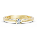 Prsten je vyrobený ze 14 karátového žlutého zlata a je osazen jedním diamantem briliantového brusu o hmotnosti 0.110 ct, kvality SI1, barvy G a s excelentním brusem. Diamant je jemně zapuštěný do obroučky, takže elegantně splyne s linií prstenu, čímž vytváří sofistikovaný, minimalistický vzhled s diskrétním třpytem. Lesklá zlatá obroučka dodává šperku nadčasovou eleganci a harmonii. Prsten působí velmi jemně a luxusně, vhodný pro každodenní nošení i speciální příležitosti. Šperk je uložen v luxusní dárkové krabičce a doplněn certifikátem pravosti.