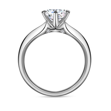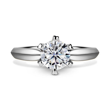 Zásnubný prsteň je vyrobený z bieleho 14 karátového zlata so stredovým diamantom okrúhleho brusu o váhe 1,0 ct. Z každej strany korunky sú vsadené dva malé brilianty ako originálny na prvý pohľad ukrytý detail. Jedinečná kombinácia ozdobné korunky pripomínajúci kvet je zasadená do obrúčky, ktorá sa smerom ku korunke ľahko zužuje. Šperk je uložený v luxusnej darčekovej krabičke spolu s certifikátom pravosti.